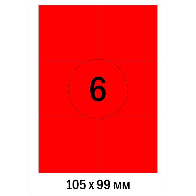 Этикетки самоклеящиеся Pro Mega Label 105х99, красные, 6шт на листе А4, 100 листов