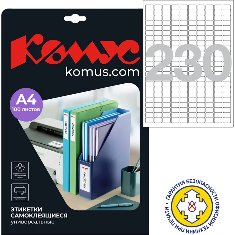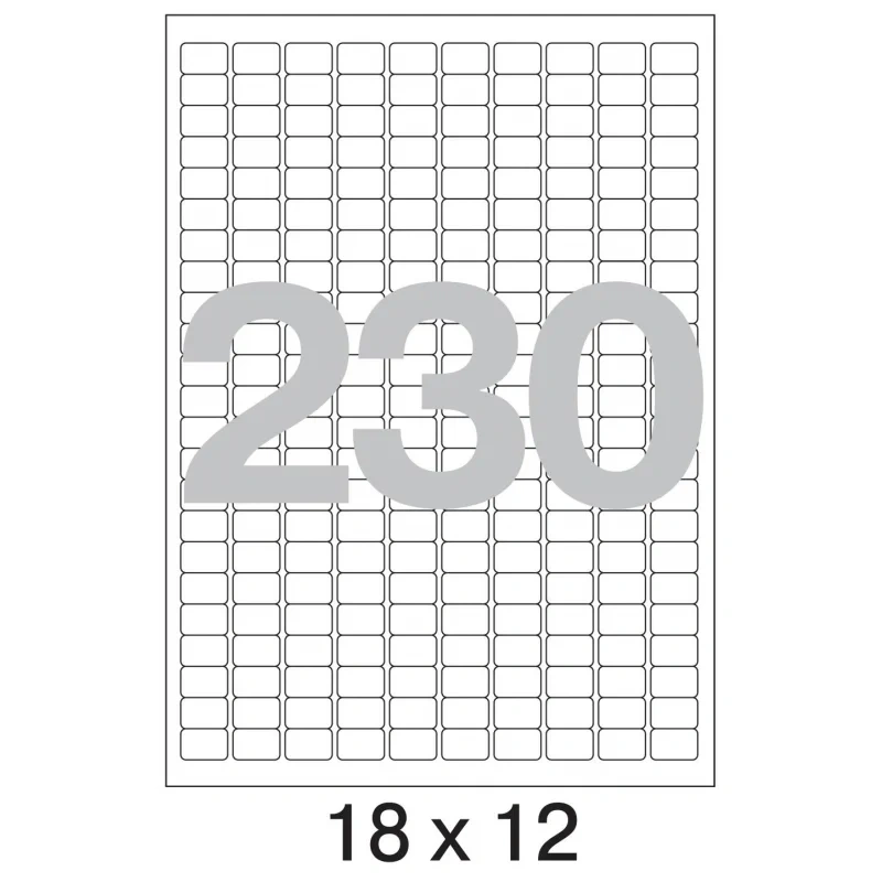 Этикетки самоклеящиеся Pro Mega Label 18х12мм, белые, 230шт на листе А4, 100 листов