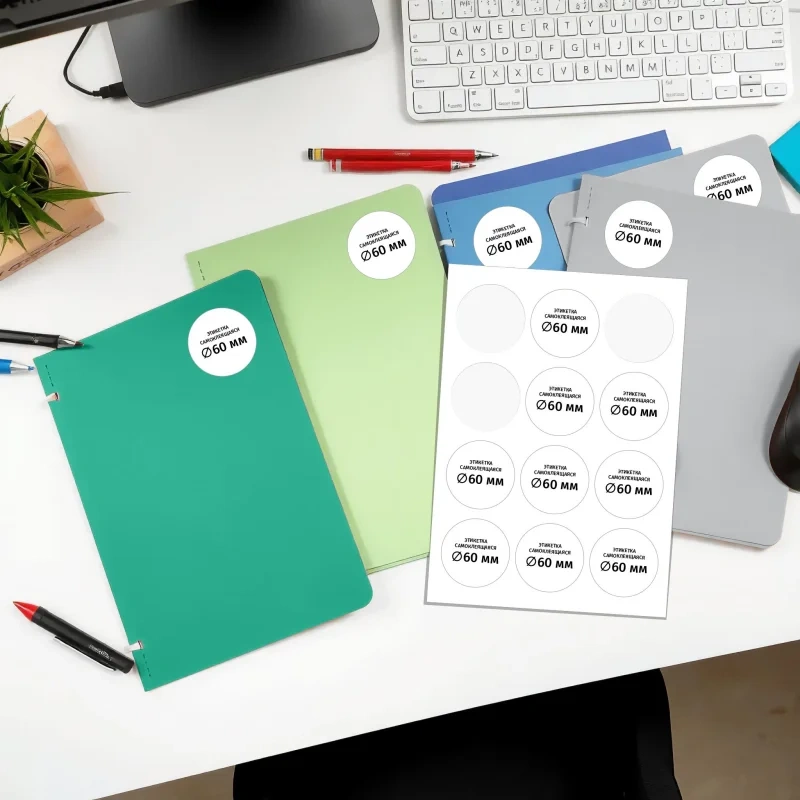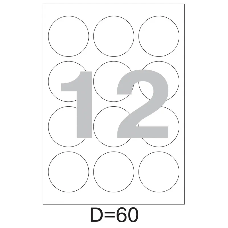 Этикетки самоклеящиеся Pro Mega Label d=60 мм, белые, 12шт на листе А4, 100 листов