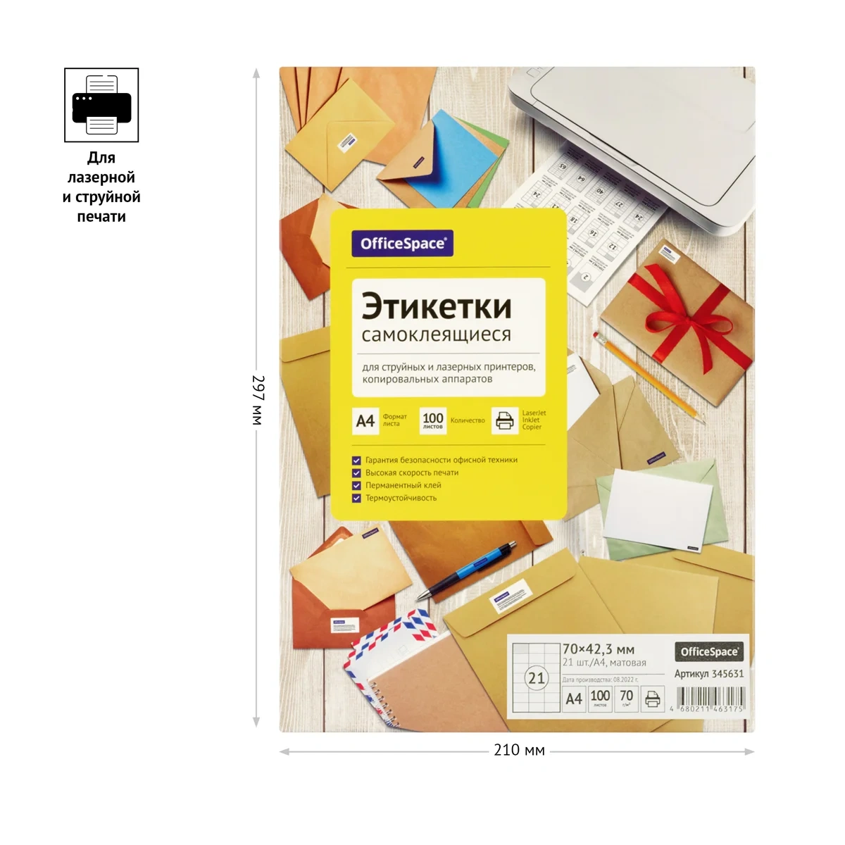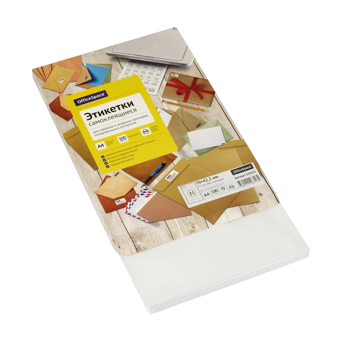 Этикетки самоклеящиеся А4 100л. OfficeSpace, белые, 21 фр. (70*42,3), 70г/м2