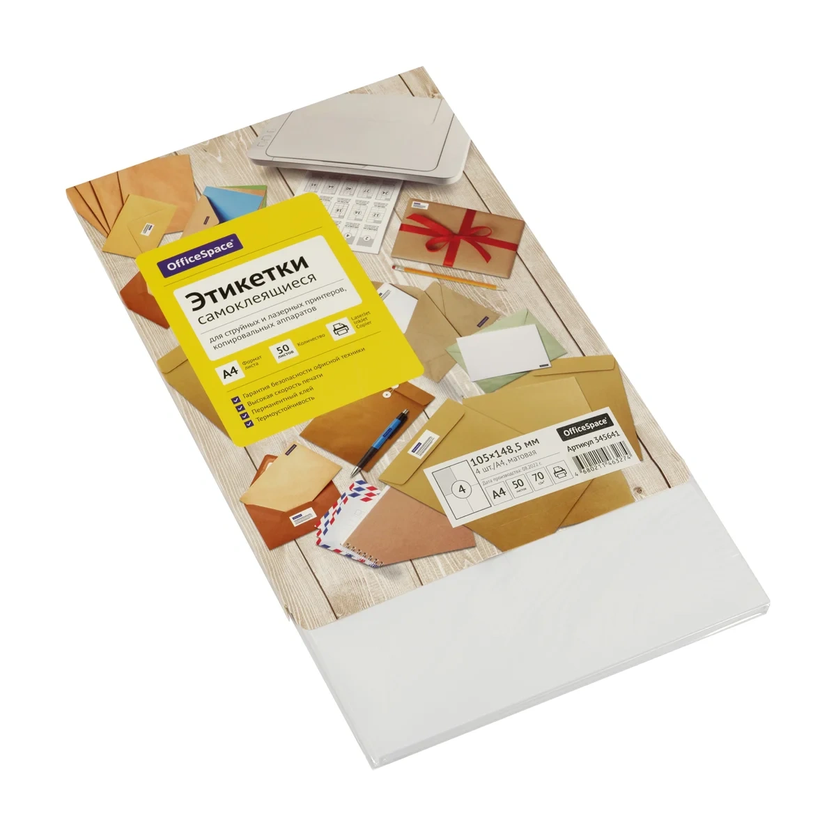 Этикетки самоклеящиеся А4 50л. OfficeSpace, белые, 04 фр. (105*148,5), 70г/м2
