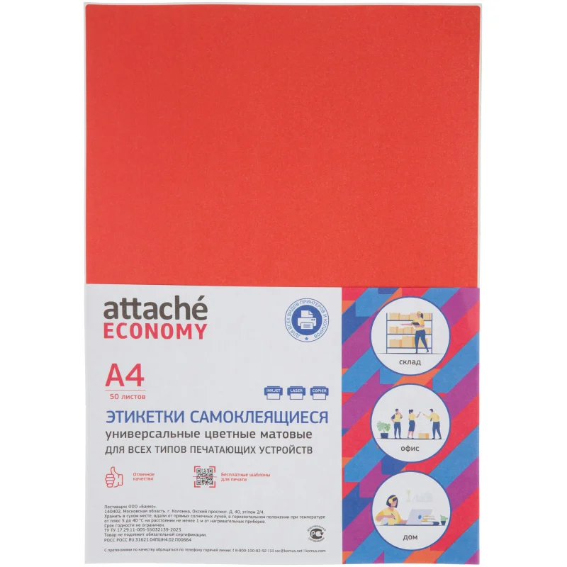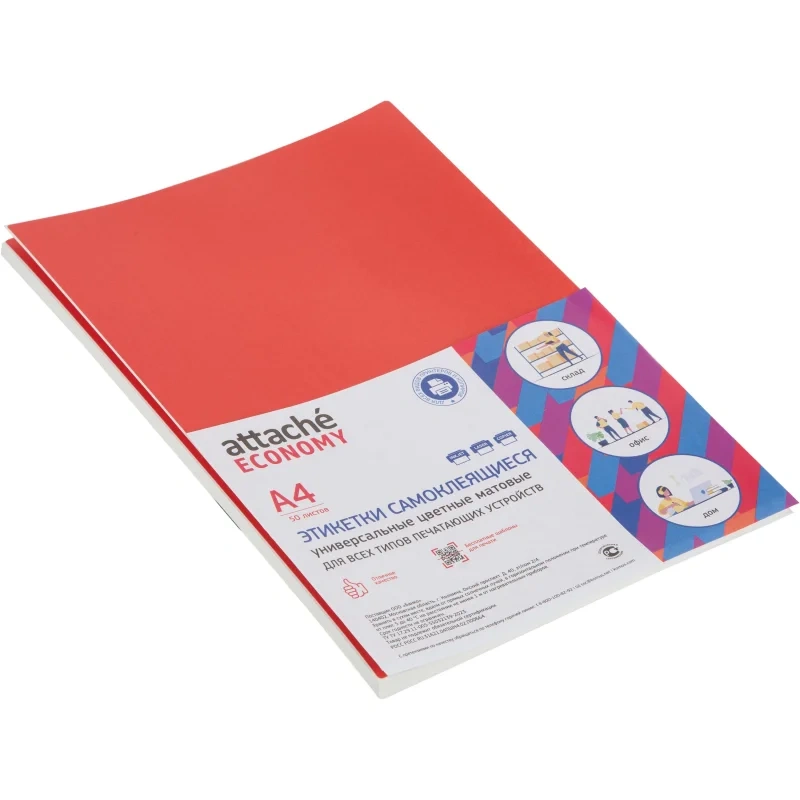 Этикетки самоклеящиеся Attache Economy 210х297мм красная 1шт/л А4 50л/уп