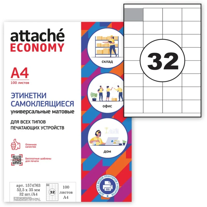 Самоклеящиеся универсальные этикетки Attache Economy рекомендованы для профессиональных и высокоскоростных принтеров (свыше 30 стр/мин). Для персональных и низкоскоростных принтеров (до 20 стр/мин) рекомендуется полистная подача в печать. Не рекомендуется использование на ПВХ поверхностях. Для оформления и печати этикеток удобно использовать шаблон. Для того чтобы увидеть разлиновку шаблона, необходимо в ПО Word открыть вкладку «Макет» и щелкнуть «Отобразить сетку». Для удобства работы с рисунками: выделить вставленный в шаблон рисунок левой кнопкой мыши, открыть вкладку «Формат» и выбрать режим «Обтекание текстом — По контуру». Также можно самостоятельно сформировать шаблон в ПО Word.