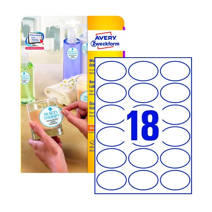 Этикетки удаляемые Avery Zweckform L6024REV-25, белые, 63.5х42.3мм, 18шт на листе А4, 25 листов