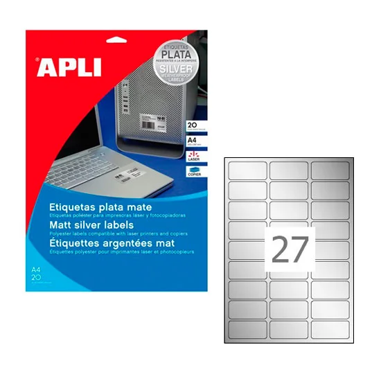 Этикетки всепогодные Apli 10070 63.5x29.6мм, 540шт, металлизированные