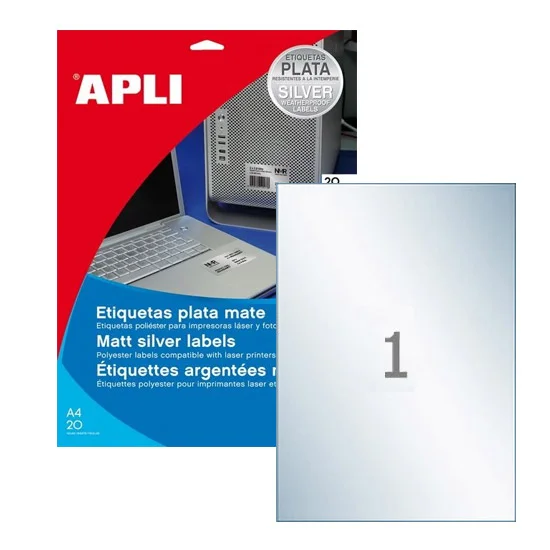 Этикетки всепогодные Apli 10071 210х297мм, 20шт, металлизированные