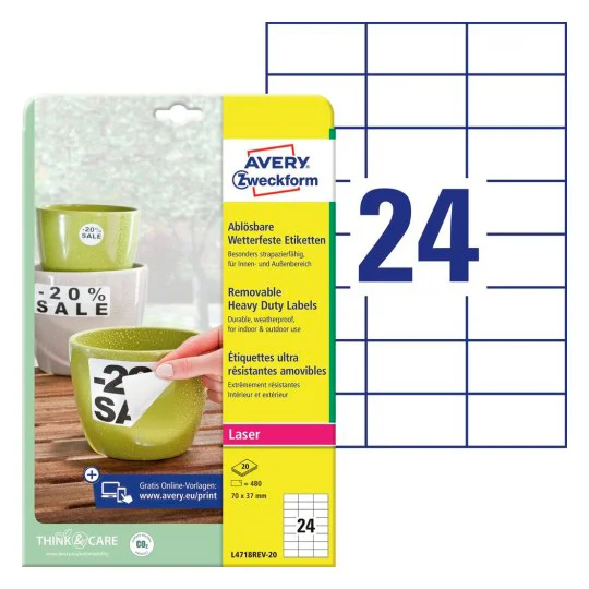 Этикетки всепогодные Avery Zweckform 70х37мм, L+K+CL, полиэстер, 480шт, 20 листов