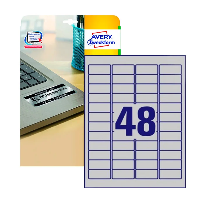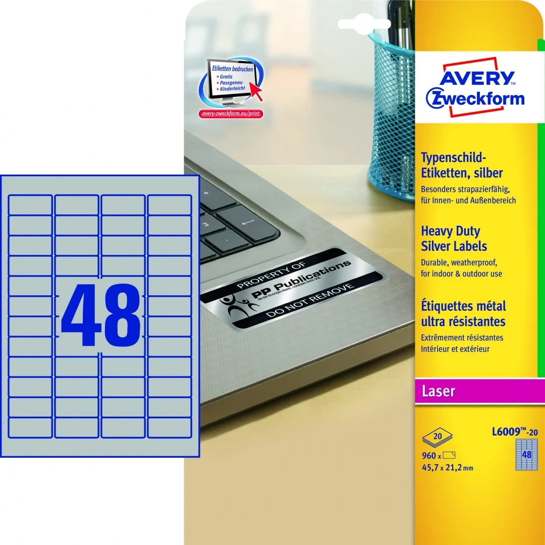 Этикетки высокостойкие Avery Zweckform L6009-100, серебристые, 45.7х21.2мм, 48шт на листе А4, 100 листов