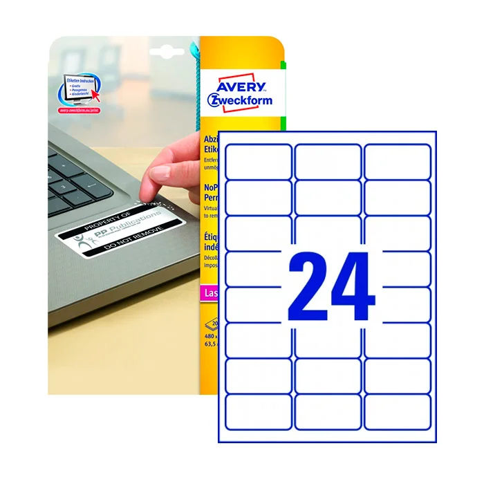 Этикетки высокостойкие Avery Zweckform L6146-20, белые, 63.5х33.9мм, 24шт на листе А4, 20 листов