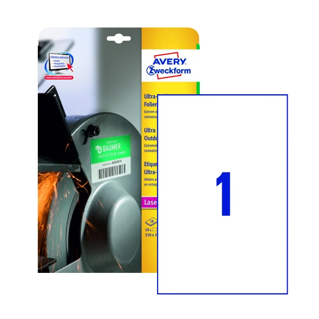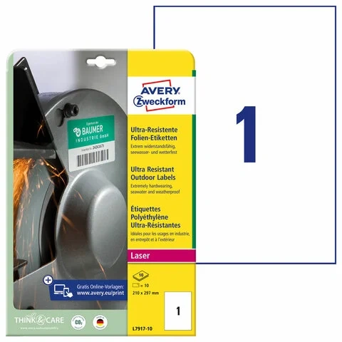 Этикетки высокостойкие Avery Zweckform L7917-10, белые, 210х297мм, 1шт на листе А4, 10 листов