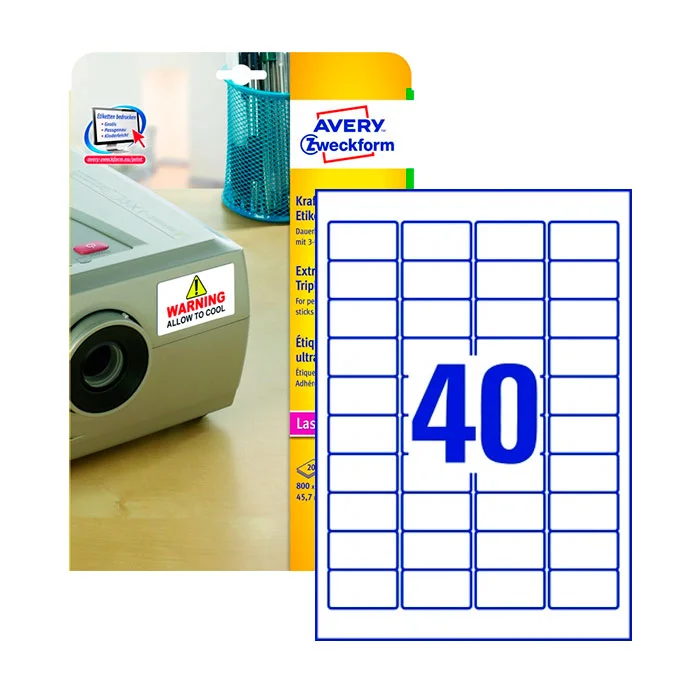 Этикетки высокостойкие Avery Zweckform TripleBond L6140-20, белые, 45.7х25.4мм, 40шт на листе А4, 20 листов
