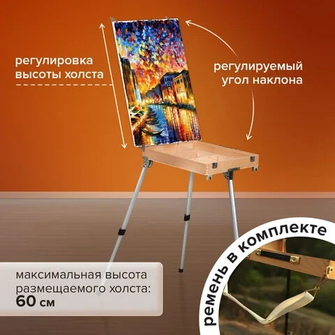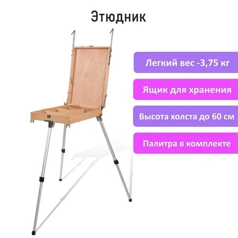 Этюдник из бука, 47х33х8,5 см, высота холста до 60 см, ножки алюминий 78 см, BRAUBERG ART, 192268