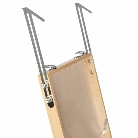 Этюдник изготовлен из натурального бука, пропитанного маслом, с применением качественной фурнитуры. Оснащен ящиком для хранения кистей, красок и других принадлежностей. В комплект входит деревянная палитра. Этюдник позволяет комфортно работать как сидя, так и стоя благодаря съемным алюминиевым телескопическим ножкам длиной 77 см и регулирующему наклону холста с его максимальной высотой до 60 см. Для удобства переноски имеется регулируемый тесемный ремень и ручка.