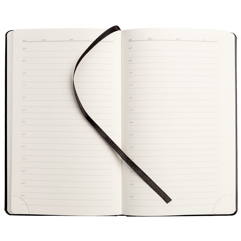 Ежедневник с твердой обложкой, выполнен из материала Brand, черный АА, дополнен резинкой и ляссе в цвет обложки. Блок 955:Кол-во страниц — 192; Бумага — тонированная, плотность 70 г/м; Форзац и нахзац — тонированные. Шильда на резинку поставляется отдельно. Услуга сборки добавляет к сроку выполнения заказа 3 рабочих дня. От сборки можно отказаться, написав об этом в примечании к заказу.