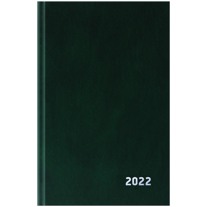 Незаменимый помощник для планирования встреч, звонков, переговоров. Отличный бизнес-аксессуар. Обложка - твердый картон, материал - бумвинил зелёного цвета с тиснением серебряной фольгой. Удобный формат - А5. Прошитый переплет надежно держит блок. Блок 168 листов, офсет 100% белизны, плотность 60 гр/м2.