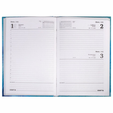 Внутренний блок включает 160 листов белой бумаги плотностью 60 г/м2. Благодаря стандартному формату А5 (145х215 мм) ежедневник удобно использовать как в офисе, так и на выездных деловых встречах. Твердая обложка покрыта глянцевой пленкой. Печать внутреннего блока в одну краску.