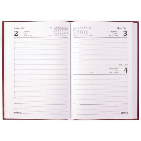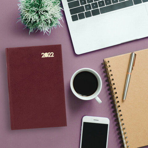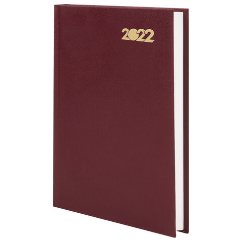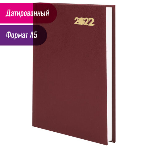 Ежедневник датированный 2022 (145х215 мм), А5, STAFF, твердая обложка бумвинил, бордовый, 113338