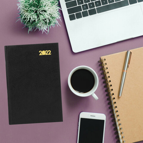 Ежедневник датированный 2022 (145х215 мм), А5, STAFF, твердая обложка бумвинил, черный, 113339