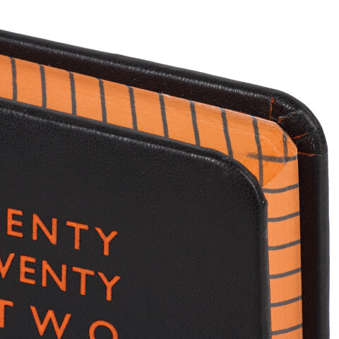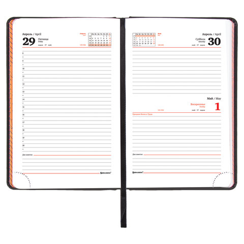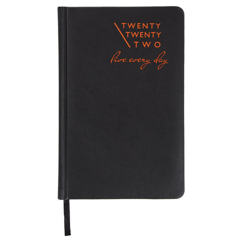 Внутренний блок включает 168 листов белой бумаги плотностью 70 г/м2. Каждая страничка имеет перфорированный угол. Благодаря стандартному формату А5 (138х213 мм) ежедневник удобно использовать как в офисе, так и на выездных деловых встречах. Жесткая книжная обложка стилизована под гладкую кожу. Материал обложки черного цвета подходит для горячего тиснения и при лазерной гравировке меняет цвет на оранжевый. Срез ежедневника окрашен в цвет термотиснения, а форзац - в цвет обложки, что придает ему особый шарм. Дополнением является закладка-ляссе, с помощью которой при необходимости можно быстро открыть ежедневник на нужной странице. Помимо прочего, ежедневник снабжен обширным справочным материалом.