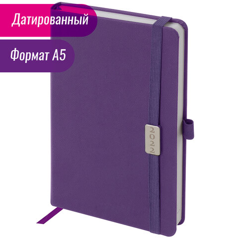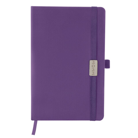 Внутренний блок включает 168 листов белой бумаги плотностью 70 г/м2. Каждая страничка имеет перфорированный угол. Благодаря стандартному формату А5 (138х213 мм) ежедневник удобно использовать как в офисе, так и на выездных деловых встречах. Жесткая книжная обложка в нежном сиреневом цвете стилизована под искусственную кожу с мелким рисунком, фиксируется резинкой, поэтому ежедневник не откроется в сумке или портфеле и страницы не помнутся. Материал обложки подходит для горячего тиснения. Для удобства пользования ежедневник снабжен держателем для фиксации ручки. Форзац ежедневника представлен картами мира и России. Дополнением является закладка-ляссе, с помощью которой при необходимости можно быстро открыть ежедневник на нужной странице. Помимо прочего, ежедневник снабжен обширным справочным материалом.