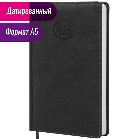 Ежедневник датированный 2022 А5 138x213 мм BRAUBERG 'Favorite', под кожу, черный, 112732