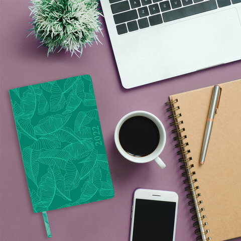 Ежедневник датированный 2022 А5 138x213 мм BRAUBERG 'Foliage', под кожу, бирюзовый, 112818