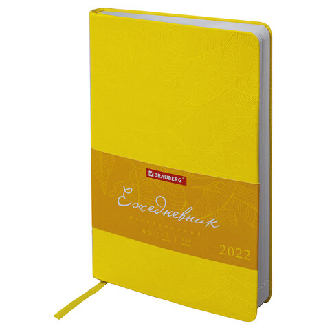 Ежедневник датированный 2022 А5 138x213 мм BRAUBERG 'Foliage', под кожу, желтый, 112821