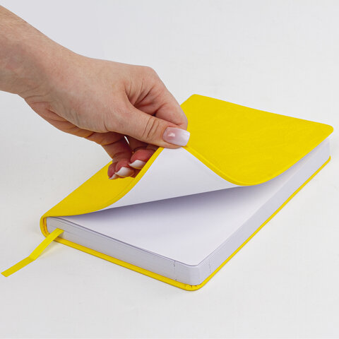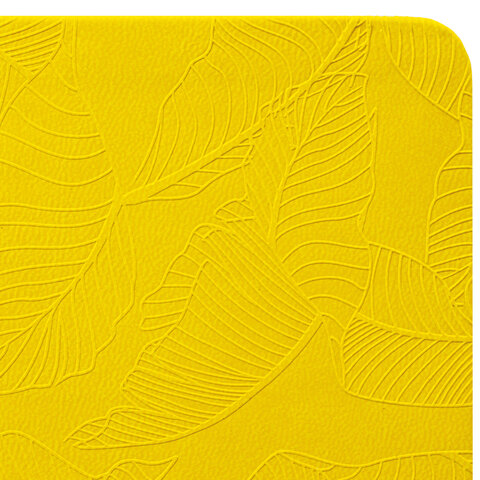 Внутренний блок включает 168 листов белой бумаги плотностью 70 г/м2. Каждая страничка имеет перфорированный угол. Благодаря стандартному формату А5 (138х213 мм) датированный ежедневник удобно использовать как в офисе, так и на выездных деловых встречах. Мягкая (интегральная) обложка по-летнему яркого желтого цвета, под гладкую кожу, имеет декоративное тиснение, что придает ежедневнику особый шарм. Материал обложки подходит для горячего тиснения. Дополнением является закладка-ляссе, с помощью которой при необходимости можно быстро открыть ежедневник на нужной странице. Помимо прочего, ежедневник снабжен обширным справочным материалом.
