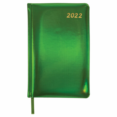 Ежедневник датированный 2022 А5 138x213 мм BRAUBERG 'Holiday', 'зеркальный кожзам', зеленый, 112750