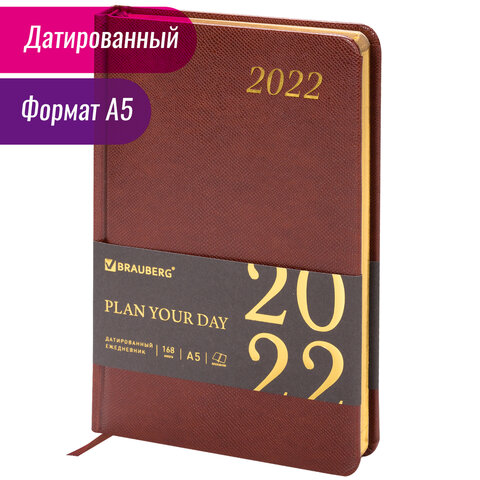 Ежедневник датированный 2022 А5 138x213 мм BRAUBERG 'Iguana', под кожу, коричневый, 112755