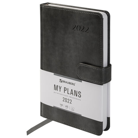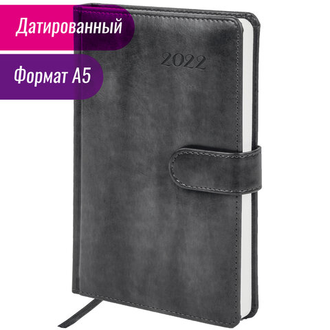 Ежедневник датированный 2022 А5 138x213 мм BRAUBERG 'Legend', под кожу, магнитная застежка, серый, 1