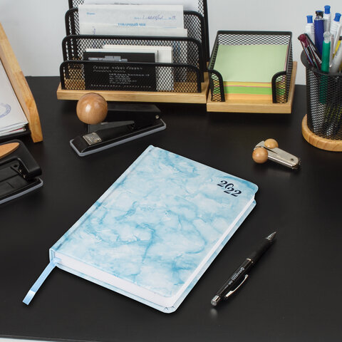 Ежедневник датированный 2022 А5 138x213 мм BRAUBERG 'Marble', под кожу, синий мрамор, 112745