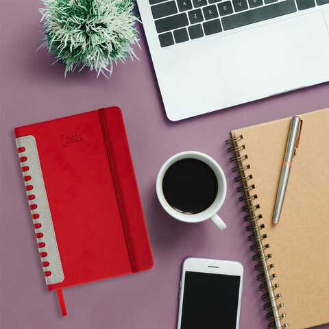 Ежедневник датированный 2022 А5 138x213 мм BRAUBERG 'Original', под кожу, бордовый/серый, 112839