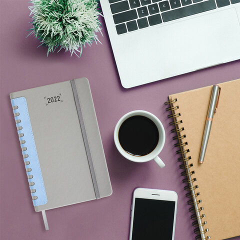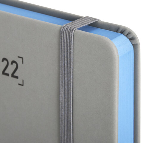 Ежедневник датированный 2022 А5 138x213 мм BRAUBERG 'Original', под кожу, серый/голубой, 112836