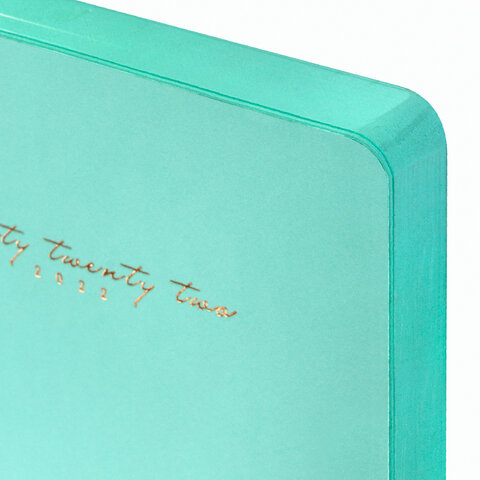 Внутренний блок включает 168 листов кремовой бумаги плотностью 70 г/м2. Каждая страничка имеет перфорированный угол. Благодаря стандартному формату А5 (138х213 мм) ежедневник удобно использовать как в офисе, так и на выездных деловых встречах. Мягкая интегральная обложка стилизована под гладкую кожу нежного пастельного бирюзового цвета. Материал обложки подходит для горячего тиснения. Цветной срез придает ежедневнику особый шарм. Дополнением является закладка-ляссе, с помощью которой при необходимости можно быстро открыть ежедневник на нужной странице. Помимо прочего, ежедневник снабжен обширным справочным материалом.