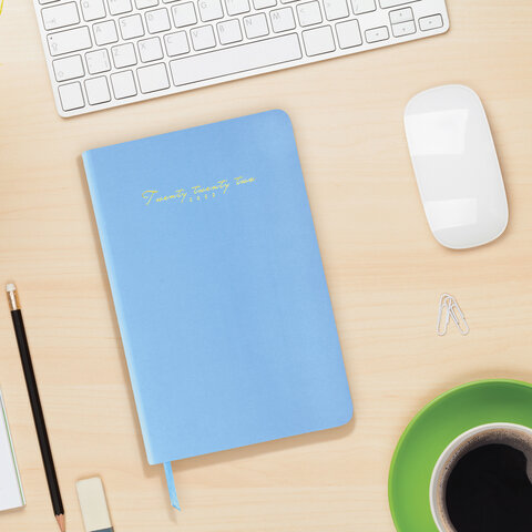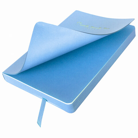 Внутренний блок включает 168 листов кремовой бумаги плотностью 70 г/м2. Каждая страничка имеет перфорированный угол. Благодаря стандартному формату А5 (138х213 мм) ежедневник удобно использовать как в офисе, так и на выездных деловых встречах. Мягкая интегральная обложка стилизована под гладкую кожу пастельного синего цвета. Материал обложки подходит для горячего тиснения. Цветной срез придает ежедневнику особый шарм. Дополнением является закладка-ляссе, с помощью которой при необходимости можно быстро открыть ежедневник на нужной странице. Помимо прочего, ежедневник снабжен обширным справочным материалом.