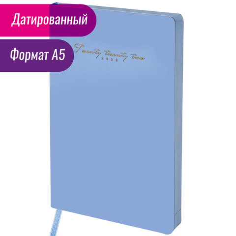 Ежедневник датированный 2022 А5 138x213 мм BRAUBERG 'Pastel', под кожу, синий, 112854