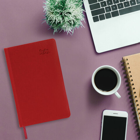 Ежедневник датированный 2022 А5 138x213 мм BRAUBERG 'Rainbow', под кожу, красный, 112769