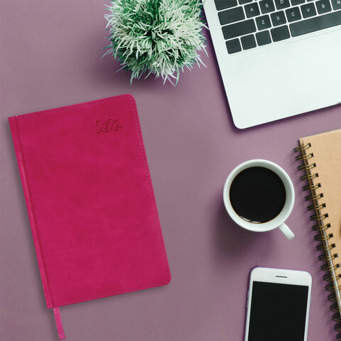 Ежедневник датированный 2022 А5 138x213 мм BRAUBERG 'Rainbow', под кожу, розовый, 112770