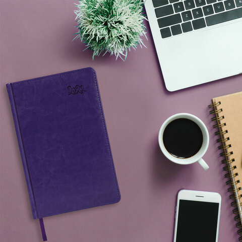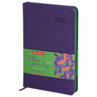 Ежедневник датированный 2022 А5 138x213 мм BRAUBERG 'Rainbow', под кожу, сиреневый, 112771