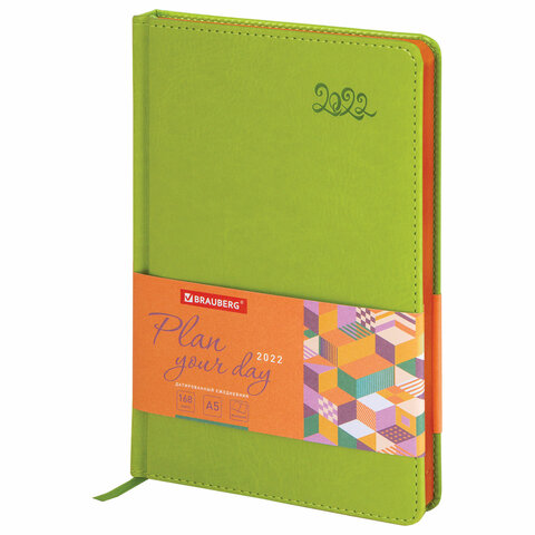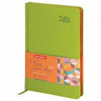 Ежедневник датированный 2022 А5 138x213 мм BRAUBERG 'Rainbow', под кожу, зеленый, 112772