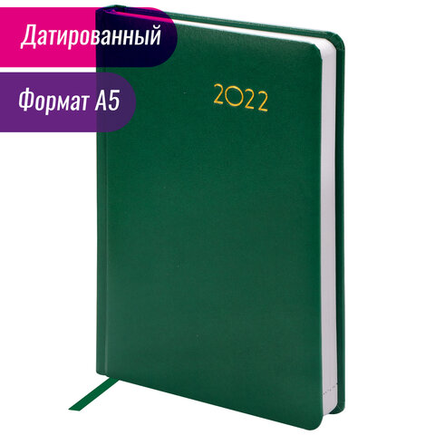 Ежедневник датированный 2022 А5 138x213 мм BRAUBERG 'Select', балакрон, зеленый, 112774
