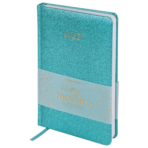 Ежедневник датированный 2022 А5 138x213 мм BRAUBERG 'Sparkle', блестки, бирюзовый, 112829