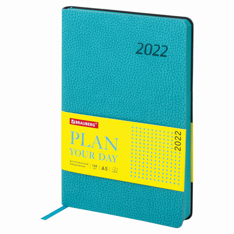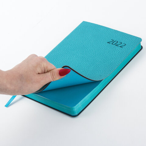 Ежедневник датированный 2022 А5 138x213 мм BRAUBERG 'Stylish', под кожу, бирюзовый, 112789