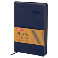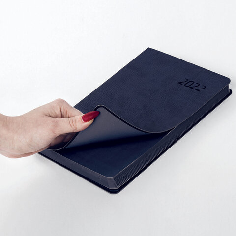 Ежедневник датированный 2022 А5 138x213 мм BRAUBERG 'Stylish', под кожу, темно-синий, 112787