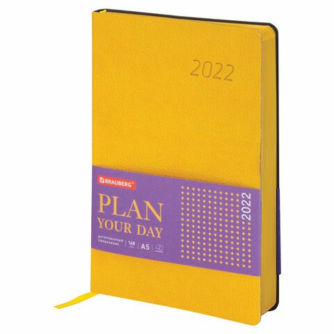 Ежедневник датированный 2022 А5 138x213 мм BRAUBERG 'Stylish', под кожу, желтый, 112792