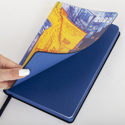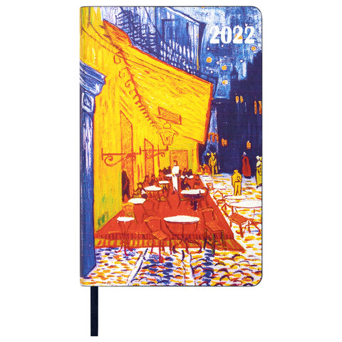 Ежедневник датированный 2022 А5 138x213 мм BRAUBERG 'Vista', под кожу, 'Ночная терраса кафе', 112840