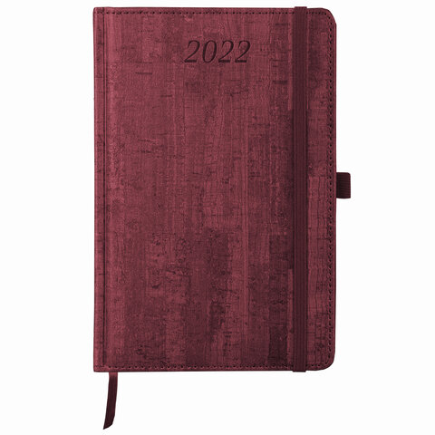 Ежедневник датированный 2022 А5 138x213 мм BRAUBERG 'Wood', под кожу, держатель для ручки, бордовый,