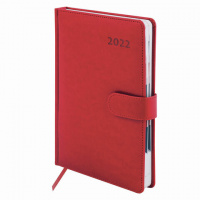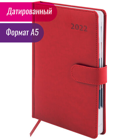 Внутренний блок включает 168 листов белой бумаги плотностью 70 г/м2. Каждая страничка имеет перфорированный угол. Благодаря стандартному формату А5 (148х218 мм) ежедневник удобно использовать как в офисе, так и на выездных деловых встречах. Твердая обложка, прошитая по периметру, стилизованная под гладкую кожу, фиксируется магнитной застежкой, поэтому ежедневник не откроется в сумке или портфеле и страницы не помнутся. Материал обложки подходит для горячего тиснения. Дополнением является закладка-ляссе, с помощью которой при необходимости можно быстро открыть ежедневник на нужной странице, а также вырубка по месяцам. Помимо прочего, ежедневник снабжен обширным справочным материалом. Выполнен в насыщенном красном цвете.