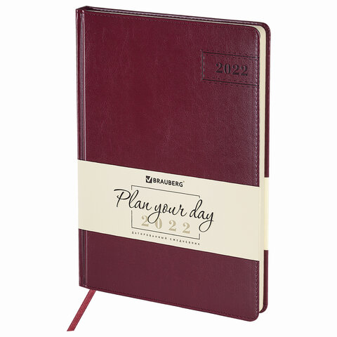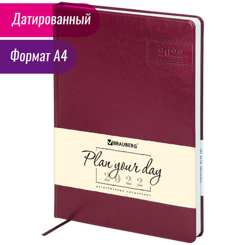 Ежедневник датированный 2022 БОЛЬШОЙ ФОРМАТ 210х297 мм А4, BRAUBERG 'Imperial', под кожу, бордовый,